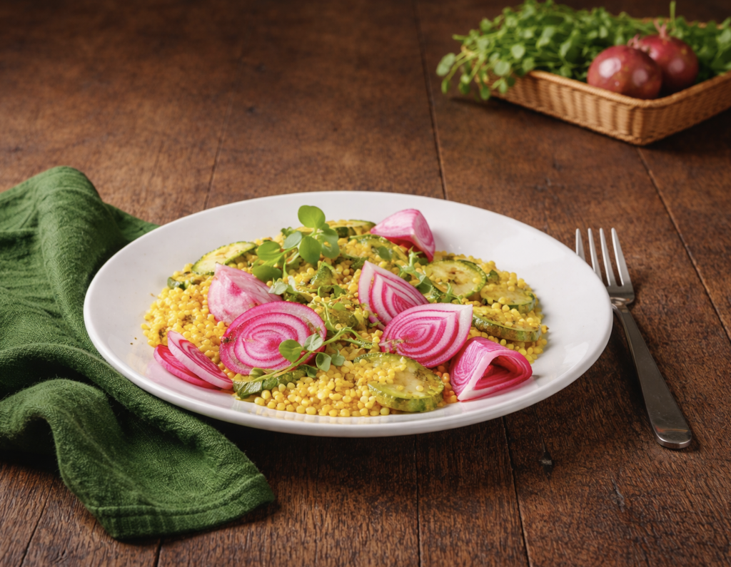 Dieser Linsen-Ringelbete-Salat ist ein ballaststoff-reiches, sättigendes Rezept für eine gesunde Ernährung zum Abnehmen. Rosenkohl, gelbe Linsen und Ringelbete liefern pflanzliches Eiweiß, komplexe Kohlenhydrate und wichtige Mikronährstoffe, die den Stoffwechsel fördern und lange satt machen. Der Saft frischer Orangen bringt Frische ins Gericht, während Fenchelsamen die Verdauung anregen und durch ihr intensives Aroma Heißhunger auf Süßes oder Snacks mindern können.